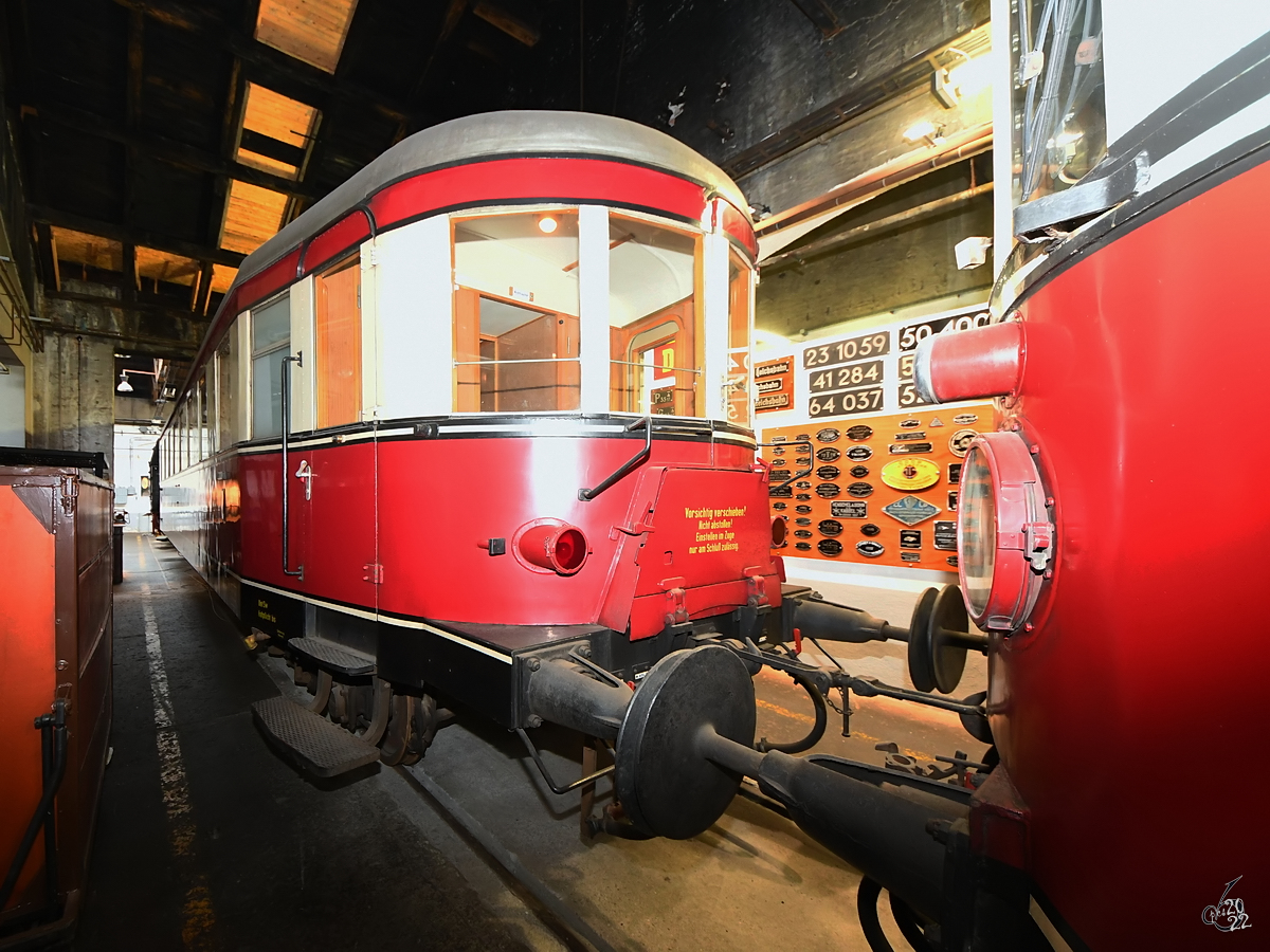 Der Ende März 2022 im Mecklenburgischen Eisenbahn- und Technikmuseum Schwerin ausgestellte Dieseltriebwagen VT 137 099 wurde 1935 gebaut. Christian Bremer