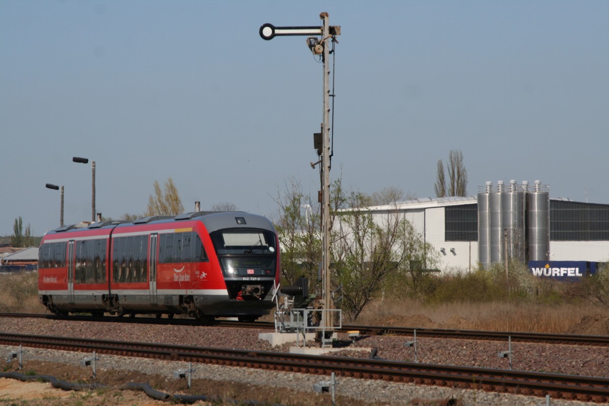 BR 642 Desiro DB Regio der Elbe Saale Bahn als RB 27 681 Schönebeck (Elbe) - Aschersleben, KBS 335 Magdeburg - Erfurt, fotografiert auf der Bodebrücke in Staßfurt am 25.03.2013 Frank Grohe