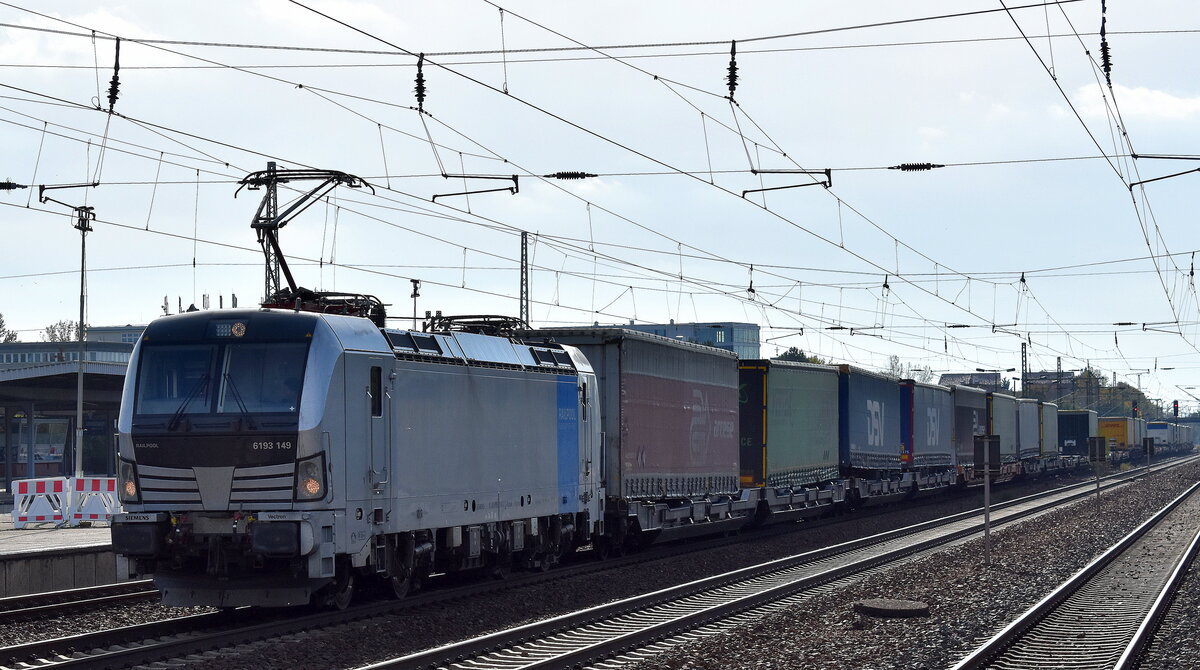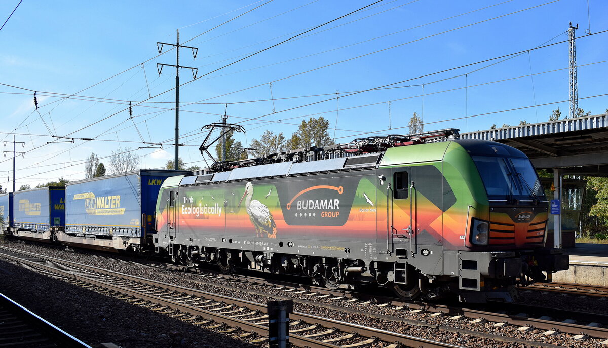 BUDAMAR LOGISTICS, a.s., Bratislava [SK] mit der Vectron "6193 025" [NVR-Nummer: 91 80 6193 025-4 D-RAILL] und KLV-Zug aus Rostock Seehafen am 30.10.24 Durchfahrt Bahnhof Berlin Hohenschönhausen. Lothar Stöckmann