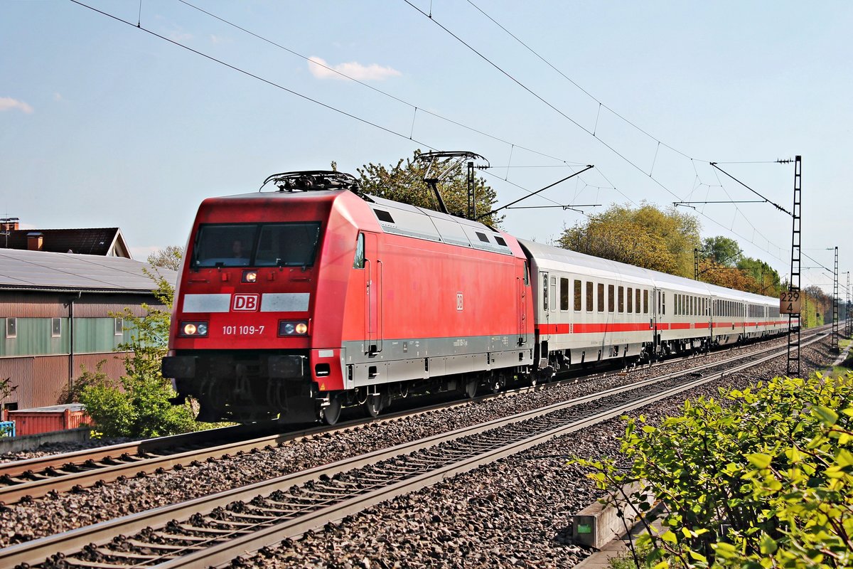 Am 11.04.2017 hatte 101 025-5 die Aufgabe den EC 7 (Hamburg Altona - Interlaken Ost) vom Startbahnhof bis an die Schweizer Grenze zu bringen. Hier ist sie mit ihrem EuroCity bei Hügelheim, als sie nur noch wenige Kilometer vor sich hatte. Tobias Schmidt