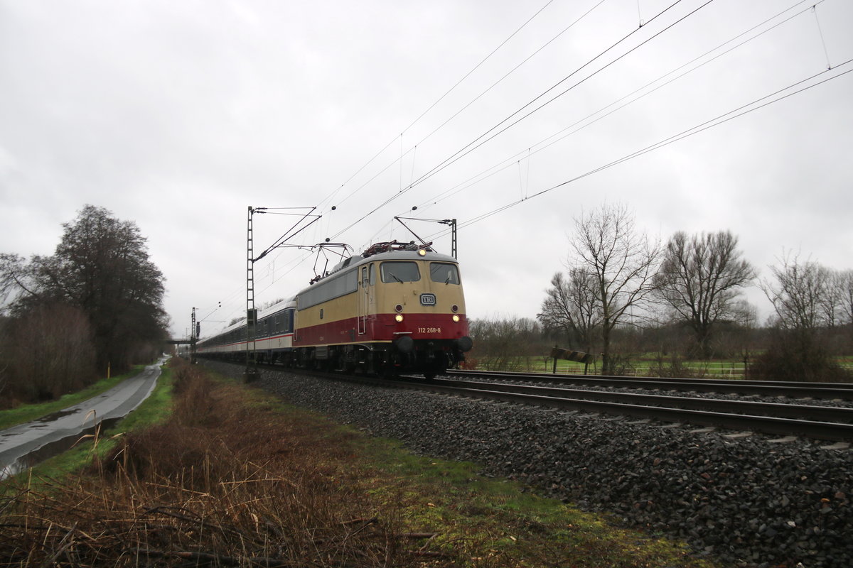 Am 1.2.2020 beförderte TRI's 112 268 einen Fußballsonderzug des MSV Duisburg zum Spiel gegen Preußen Münster durch das südliche Münsterland Jens Hubers
