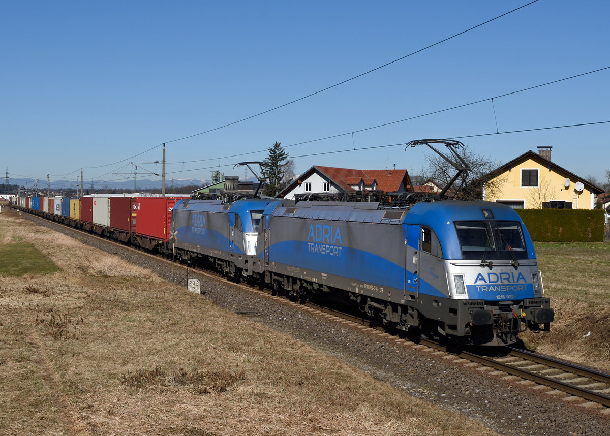 Das Adria-Tandem bestehend aus 1216 922 und 1216 921 war am Morgen des 01. März 2021 mit dem LTE-Zug 41441 von Kalsdorf nach Koper tovorna unterwegs, und wurde von mir bei Werndorf fotografiert. Kriwetz Lukas