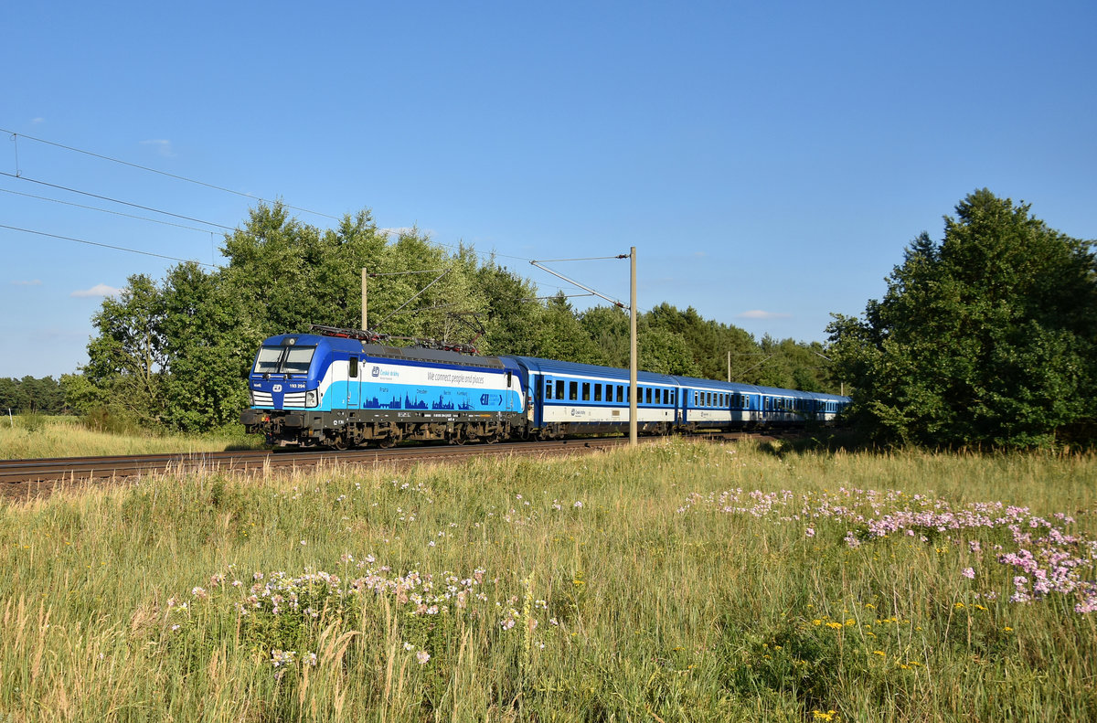 Aufgrund eines Böschungsbrandes in Brandenburg wurde am 28.08.18 einiger Personenverkehr umgeleitet, auch der EC nach Prag mit der ČD - České dráhy a.s ELL Vectron "193 291" [Name: Linda] [NVR-Number: 91 80 6193 291-2 D-ELOC] fuhr am Nachmittag durch den Bf. Flughafen Berlin-Schönefeld. Lothar Stöckmann