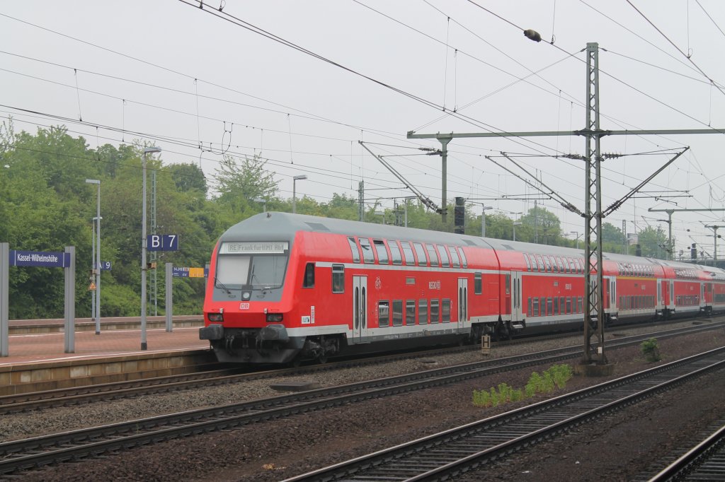 Nachschuss auf den Steuerwagen des gezogen von 146 120 am 27.5.13 in Richtung Frankfurt (Main) aus Kassel Wilhelmshöhe ausfahrenden RE. Stephan Eufinger