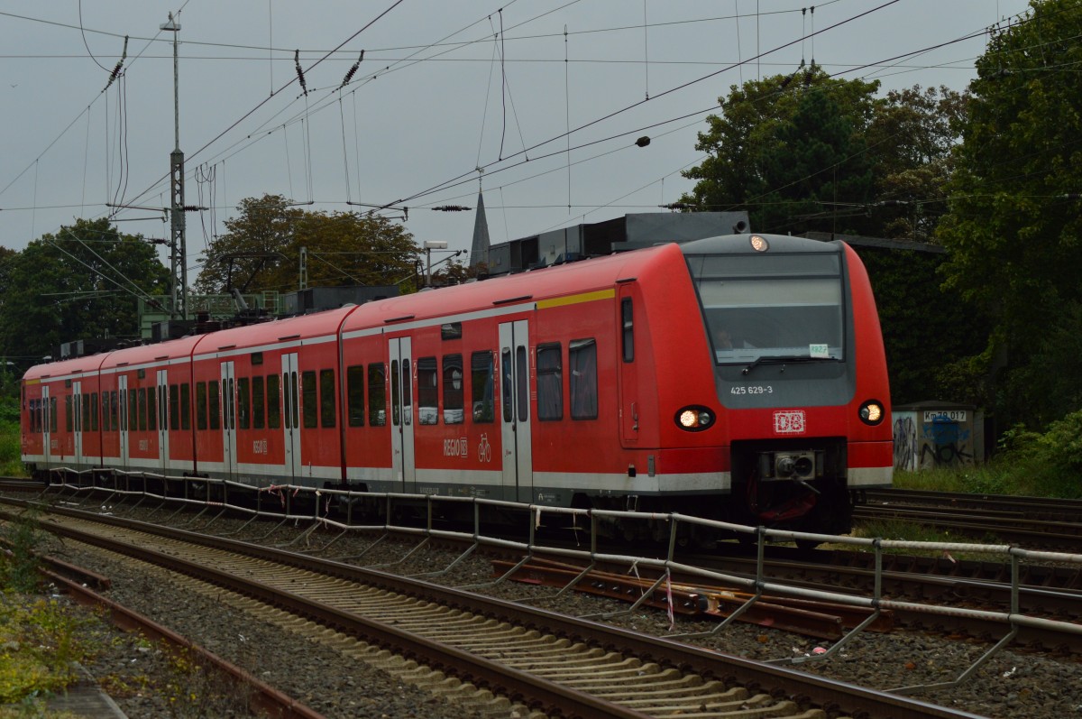 Der 425 629-3 ist hier in Rheydt als RB 27 zusehen am vergangen Montag ist er mir mit dem 425 639 beim Bü Bopparder Hamm begegnet. Kommen ganz schön herum die Quitschis....26.9.2014 Andreas Strobel