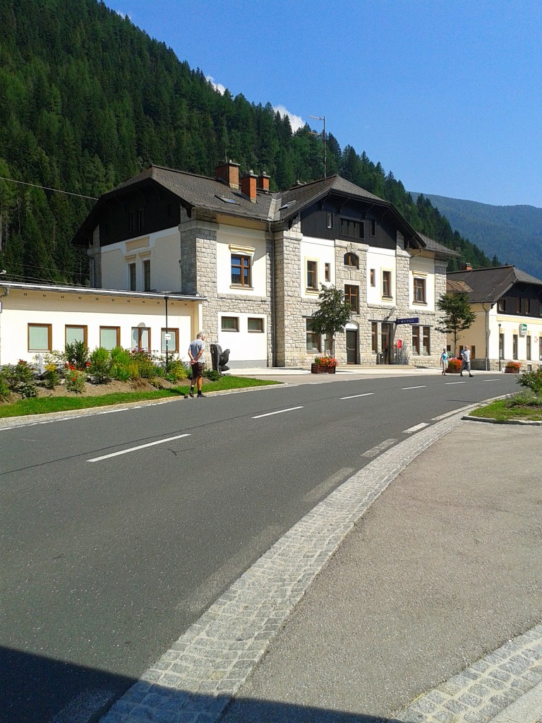 Hier ist wohl einer der seltensten Anblicke in Penk zu sehen: Es hält ein Regionalzug! Bis Dezember 2010 war Penk noch ein Bedarfshalt, heute muss jedoch jeder Zug stehen bleiben, ob jemand einsteigt oder nicht, wobei eher das ganze Jahr über, das Zweite zutrifft. Hier halten Montag bis Freitag nur zwei, samstags nur ein Zugpaar und sonntags gar kein Zug mehr. Auf diesem Bild zu sehen ist der zweite und letzte Regionalzug (R 4937) des Tages von Spittal-Millstättersee nach Mallnitz-Obervellach am 26.8.2015. Geführt wurde der Zug von 4024 177-6 Hans-Peter Kurz