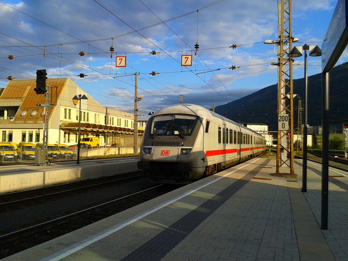 Nachschuss des EC 115 (Münster (Westf) Hbf - Klagenfurt Hbf) am 18.8.2015 bei der Abfahrt in Spittal-Millstättersee. Zuglok war 101 113-9
