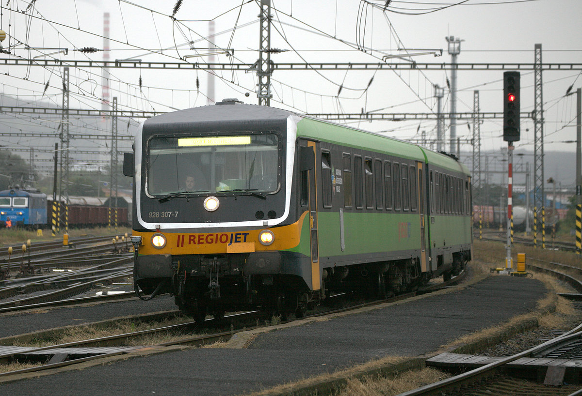 928 307-2 , hier in Ústí nad Labem zapad brachte den Fotografen nach Ústi nad Labem hl.n., als man noch Reisen durfte.....25.09.2020, 17.19 Uhr, nach einem sehr guten Essen im Hotel a restaurace s pivovarem Na Rychtě. Siegfried Heße
