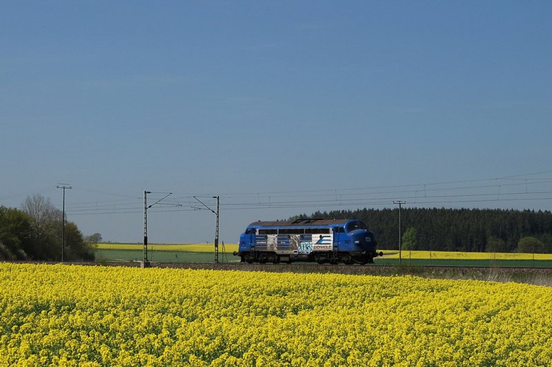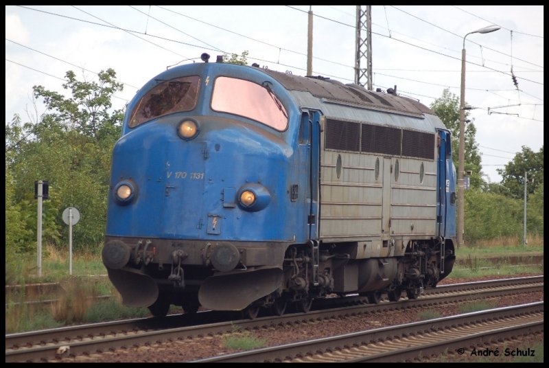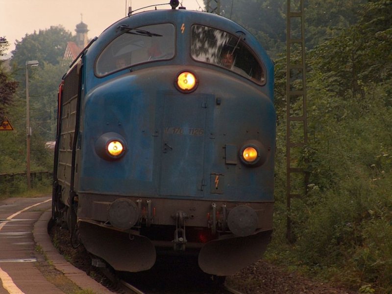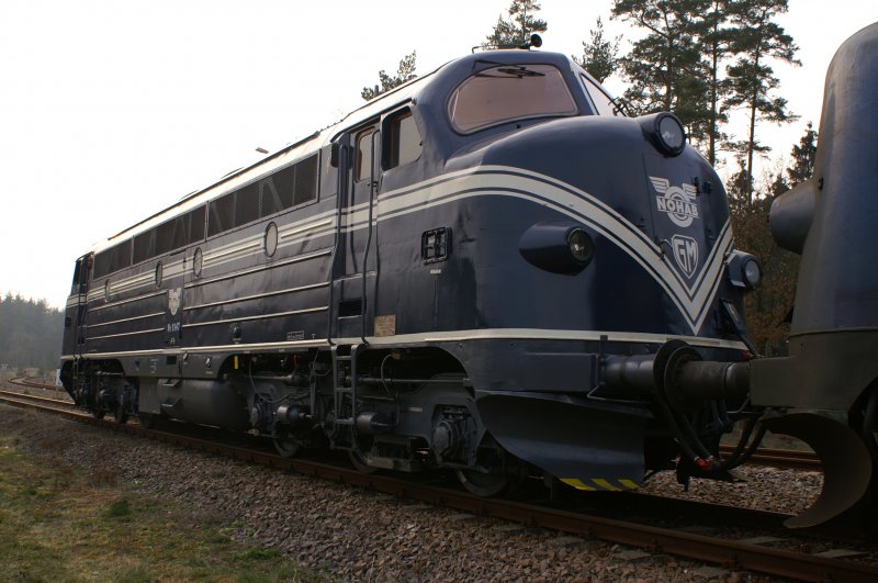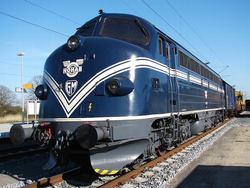 Die bullige Nase einer Nohab Lokomotive der Firma Eichholz (V 170)streckt sich an diesen schönen Sommertag gehn Himmel.
