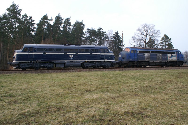 Ein sehr seltener Anblick im Vogtland. Die beiden Eichholz Nohab's V170 1149 und MY 1147 warten am 16.03.07 in Schönberg (Vogtl.)auf ihren nächsten Einsatz. Steffen Eule
