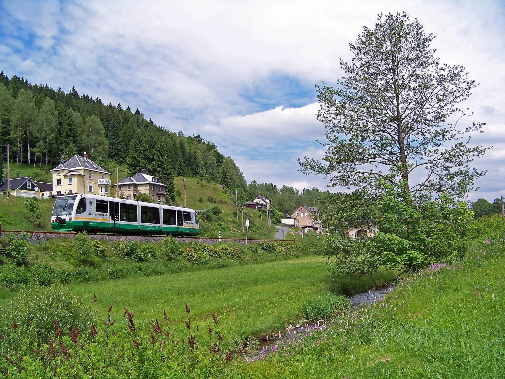 654 039 (VT39) als VBG83219 in Zwotental, 6.6.010. Zuverlässig, als der Zug zu hören war, kam die berühmte Fotowolke vor die Sonne "gehuscht", um wieder zu verschwinden, nachdem der Zug durch war... Kevin Friedel