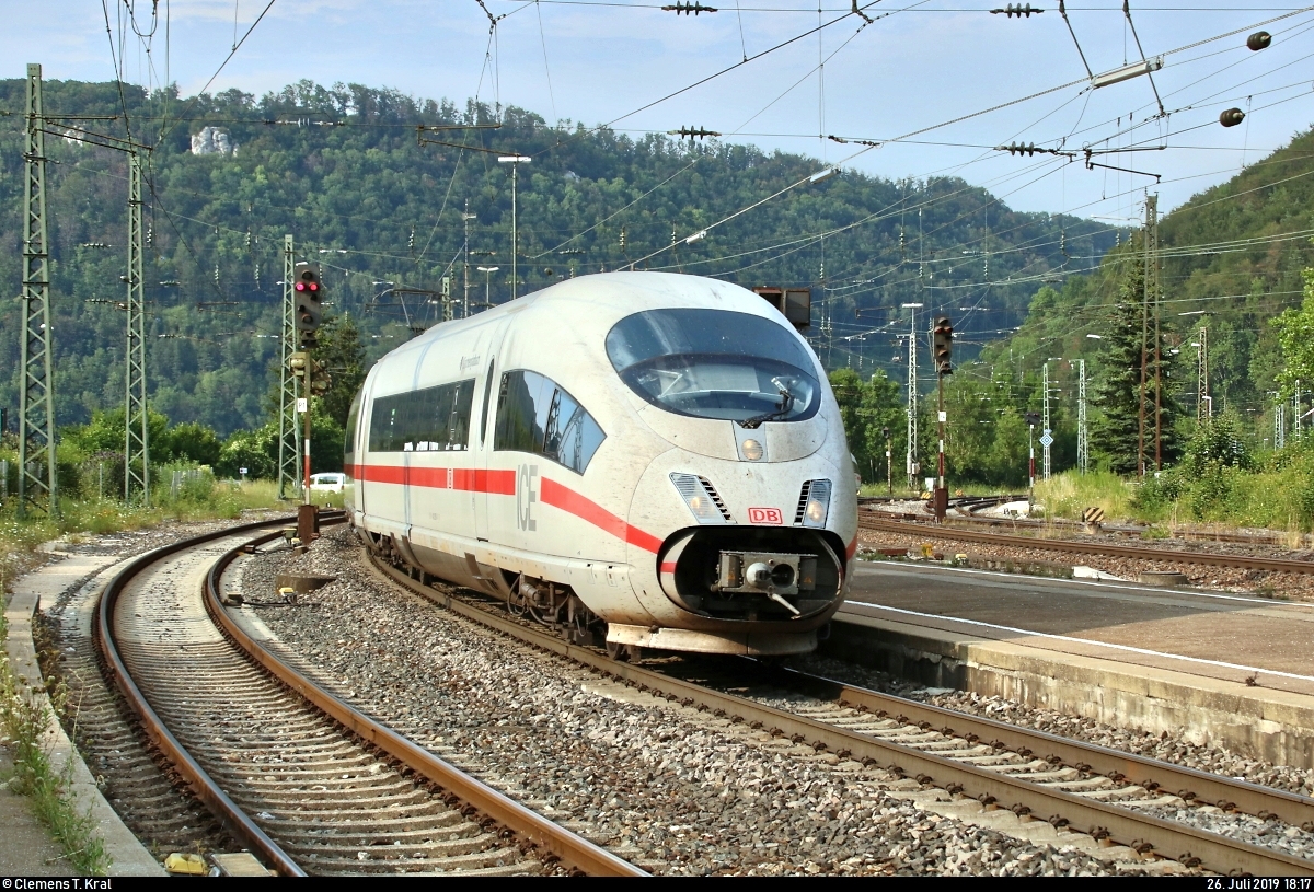 403 052-4 (Tz 352 "Mönchengladbach") als verspäteter ICE 519 (Linie 42) von Dortmund Hbf nach München Hbf durchfährt den Bahnhof Geislingen(Steige) auf der Bahnstrecke Stuttgart–Ulm (Filstalbahn | KBS 750).