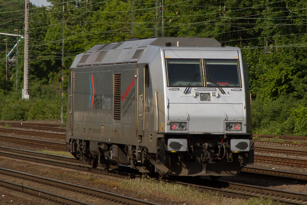 Auf den ersten Blick könnte es eine Überholung sein, was auf der Rollbahn in Hasbergen technisch durchaus möglich wäre und auch hin und wieder vorkommt. In diesem Fall ist es aber am 25.6.2019 um 9.43 Uhr eine Zug Begegnung zwischen der Rhein Cargo l85588-1, die mit ihrem Container Zug in Richtung Osnabrück unterwegs ist, und der DB 120133-4, die Ihren Intercity in Richtung Münster schiebt. Bei so einem Zufall störte mich dann auch die Radfahrerin nicht mehr. Gerd Hahn