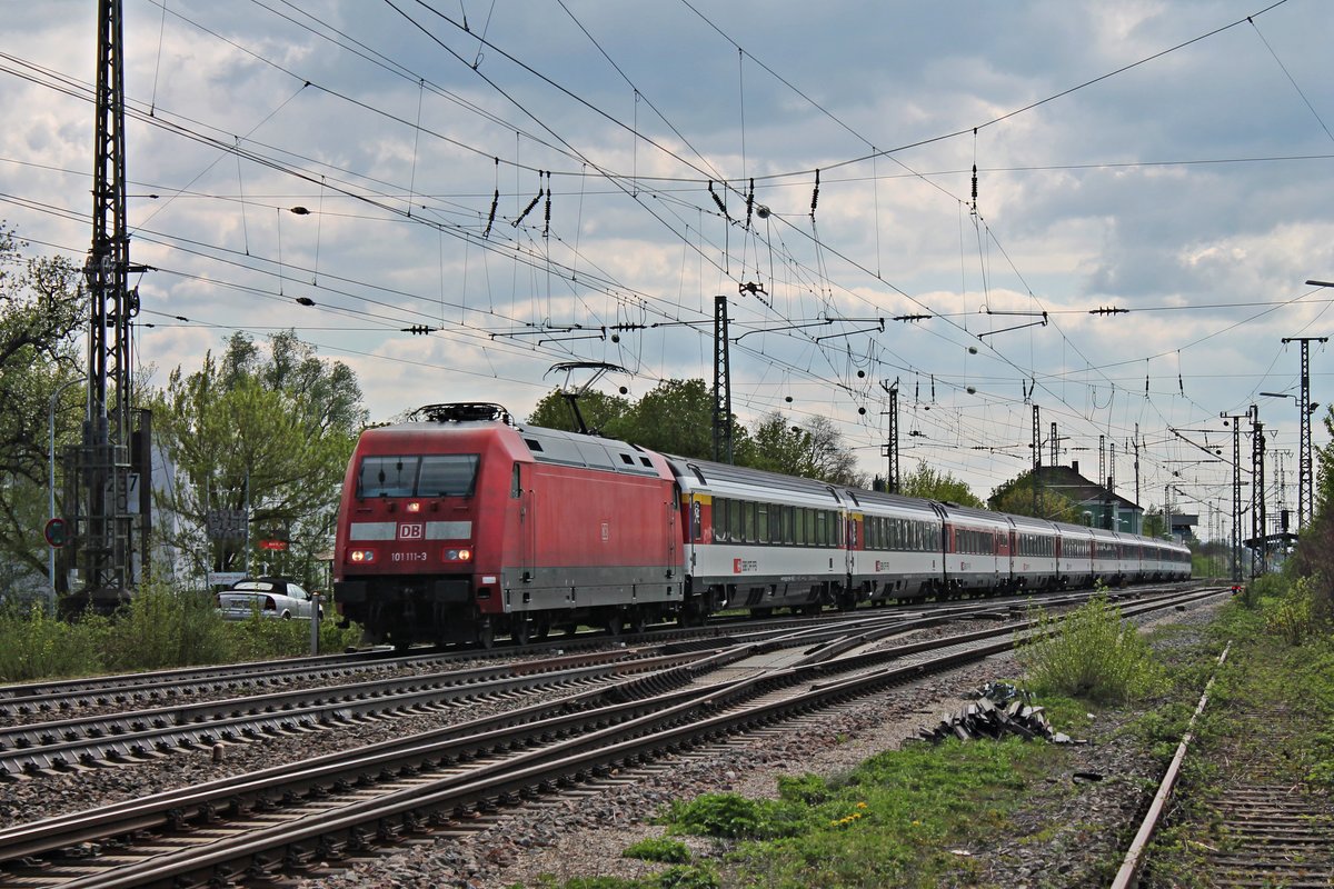 101 111-3 am 18.04.2015 bei der Durchfahrt mit dem EC 6 (Chur HB/Zürich HB - Hamburg Altona) in Müllheim (baden) gen Freiburg (Breisgau). Tobias Schmidt