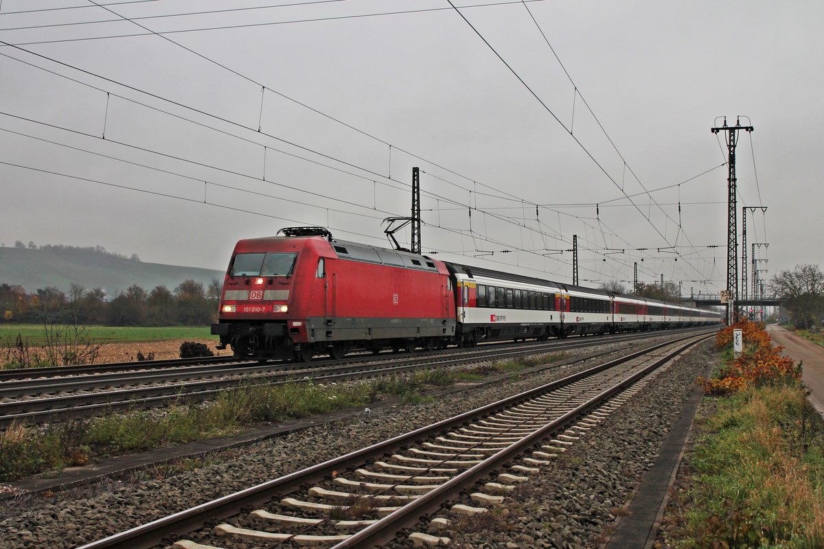 Am 31.10.2014 bespannte die Hamburger 101 010-7 den EC 7 (Hamburg Altona - Zürich HB/Chur HB (Kurswagen)), als sie bei Hügelheim in Richtung Badischer Bahnhof von Basel eilt. Tobias Schmidt