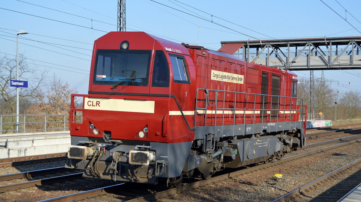 Cargo Logistik Rail-Service mit der sehr schön lackierten MaK G 2000 (NVR: "92 80 273 008-3 D-CLR") am 10.03.22 Durchfahrt Bf. Saarmund. Viele Grüße an den TF. !!!! Lothar Stöckmann