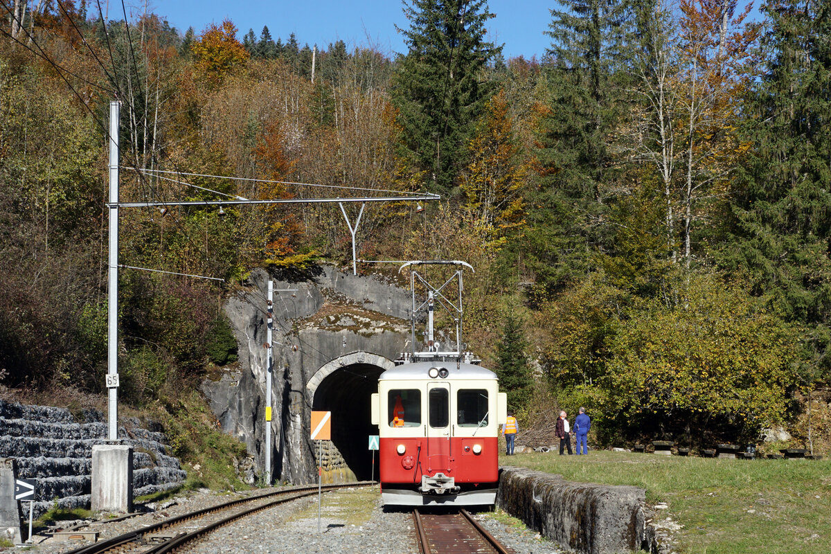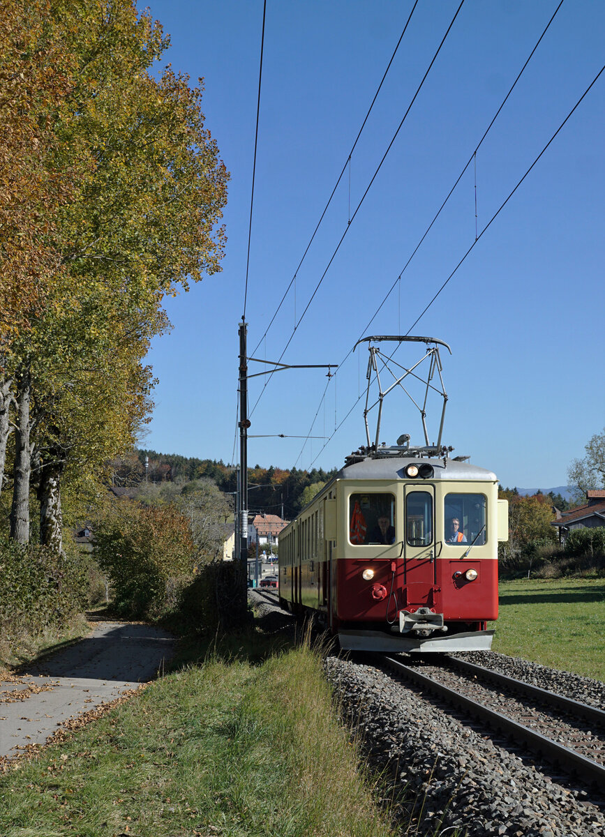 Impressionen vom 23. Oktober 2021 mit dem La Traction ehemals CJ CFe 4/4 601 und Bt 702 von einer herbstlichen Sonderfahrt.