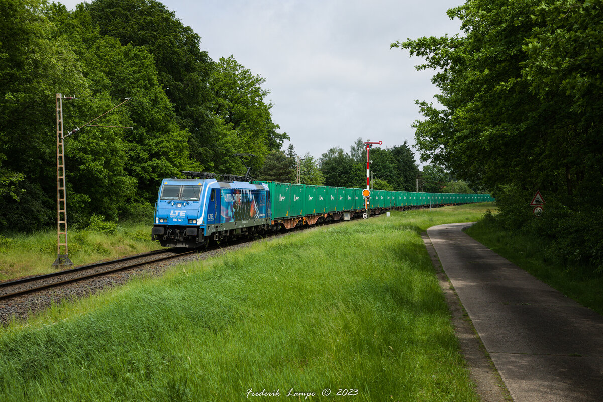 LTE Logistik- und TransportGmbH, Graz [A] mit ihrer "186 944" [NVR-Nummer: 91 80 6186 944-5 D-LTE) und einem VW PKW-Transportzug am 24.05.23 Vorbeifahrt Bahnhof Frankfurt (Oder). Lothar Stöckmann