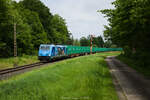 186 443 "Traumjob Lokführer" und 186 288 mit einem gemischten KLV auf dem Weg Richtung Italien am 02.04.2023 bei der Hagauer Antoniuskapelle nahe Brixlegg. Markus