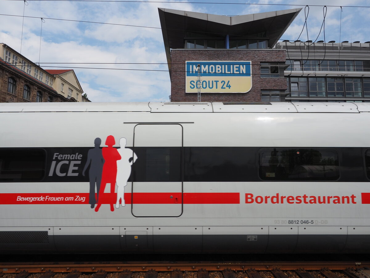 Seitenansicht des BordRestaurants von 412 046 "Female ICE". Im Gegensatz zu den Triebköpfen sind am BordRestaurant die Figuren größer gehalten. (fuhr als ICE 373 pünktlich (12:18) am Startbahnhof Berlin Ostbahnhof ab.) Offizielle "Premierenfahrt" war am 11.05.2022. Berlin, der 13.05.2022