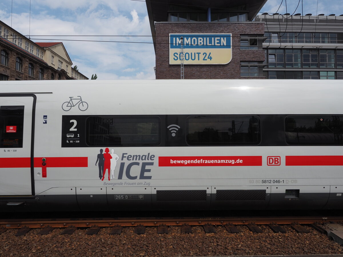 Seitenansicht des führenden Triebkopfs 412 046 "Female ICE" (fuhr als ICE 373 pünktlich (12:18) am Startbahnhof Berlin Ostbahnhof ab.) Offizielle "Premierenfahrt" war am 11.05.2022. Berlin, der 13.05.2022