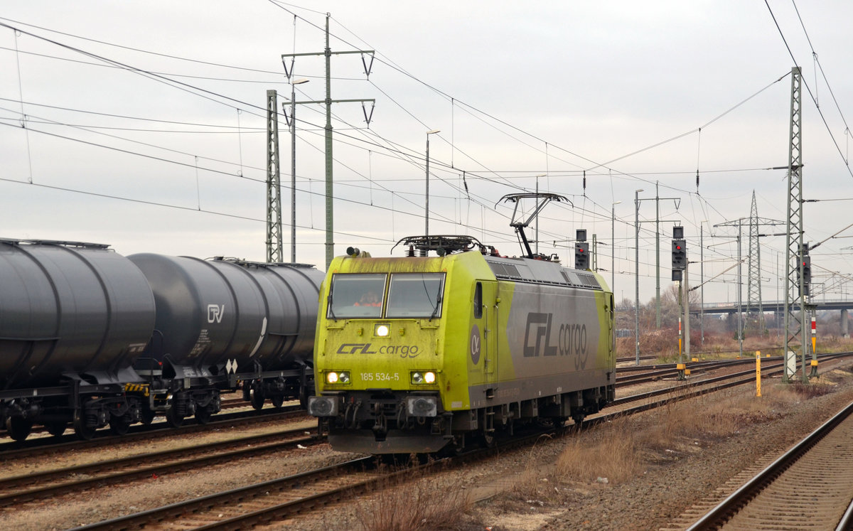 185 534 der CFL Cargo Deutschland brachte am 06.12.16 einen Kesselwagenzug nach Bitterfeld. Anschließend wurde die Traxx auf das Abstellgleis gefahren. Martin Schneider