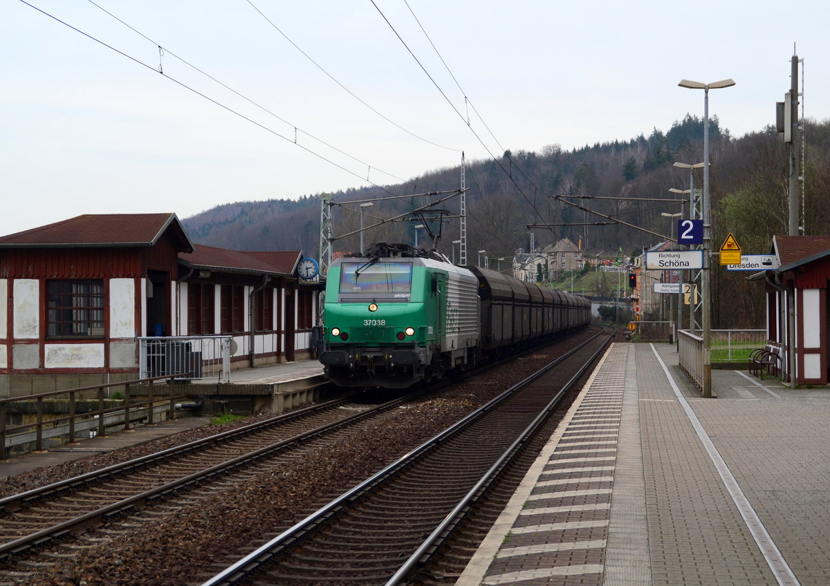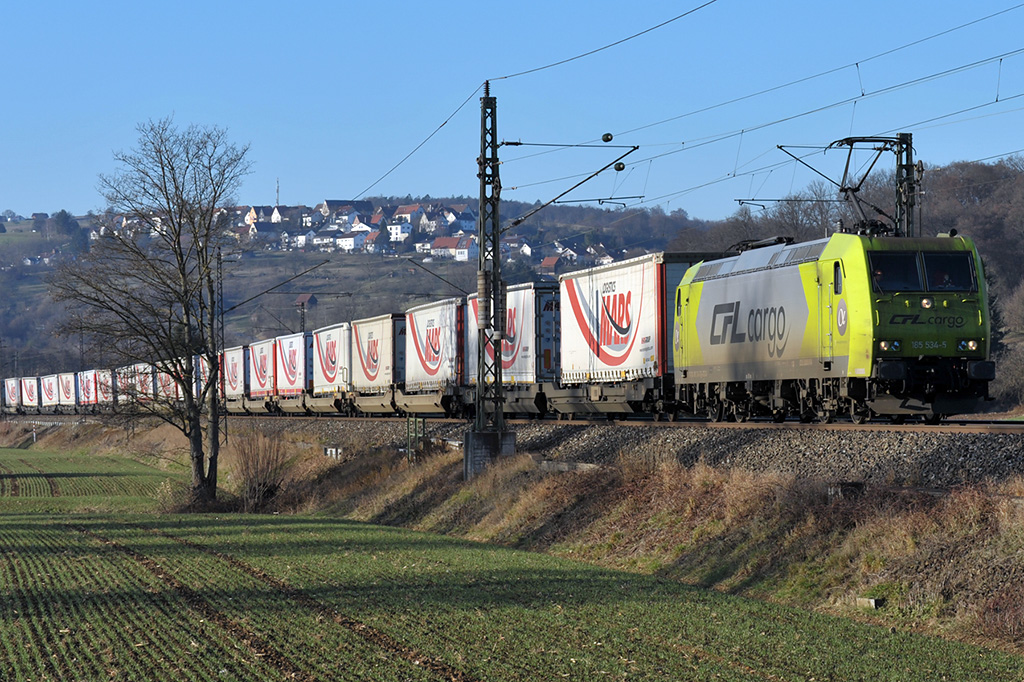 185 520, welche für CFL Cargo Deutschland im Einsatz ist, zog am 19.03.16 einen BlackBoxx-Containerzug durch Zeithain Richtung Dresden. Martin Schneider