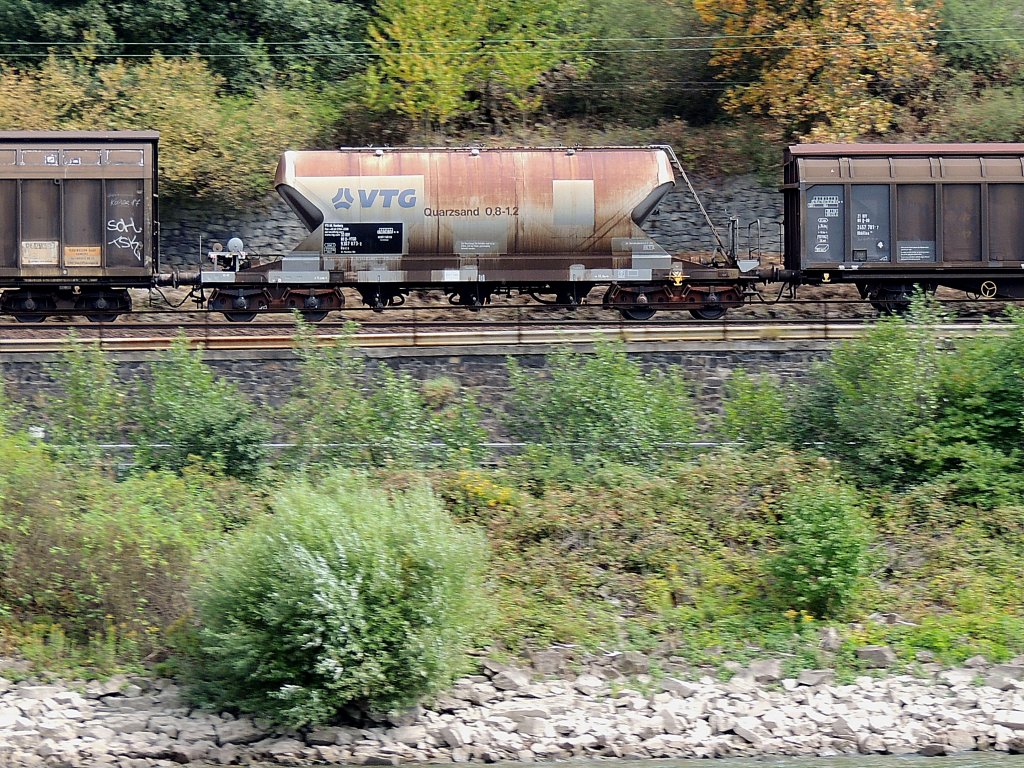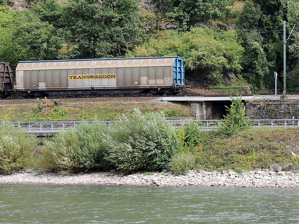 Habiis-11, 8083(D-TWA)2345257-4 bildet bei einem gemischten Güterzug Rheinabwärts  bei Assmannshausen den Zugschluß; 120829