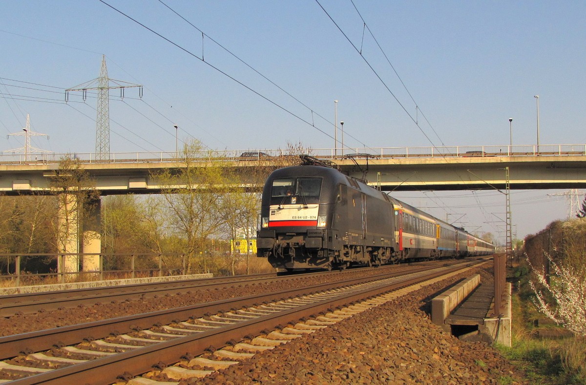 Am Nachmittag des 13.04.2014 fuhr 101 028-9 mit dem EC 9 (Hamburg Altona - Zürich HB) nördlich von Müllheim (Baden) der Schweizer Grenze entgegen. Tobias Schmidt
