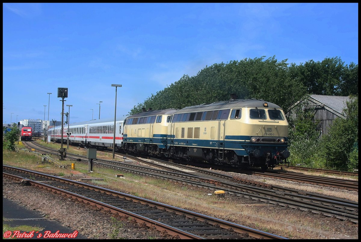 Die beiden Railsystems-218 480-2 und 490-1 in klassischer Epoche IV-Lackierung am 15.06.2020 in Westerland. Gerade sind sie mit dem IC 2072 aus Dresden angekommen, 50 Minuten später werden sie den IC 2073 in der Gegenrichtung befördern. Horst Lüdicke