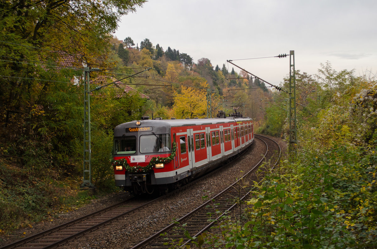 ET 420 Abschiedsfahrt der S-Bahn Stuttgart am 4. November 2016 auf der Gäubahn am ehemaligen Haltepunkt Wildpark.