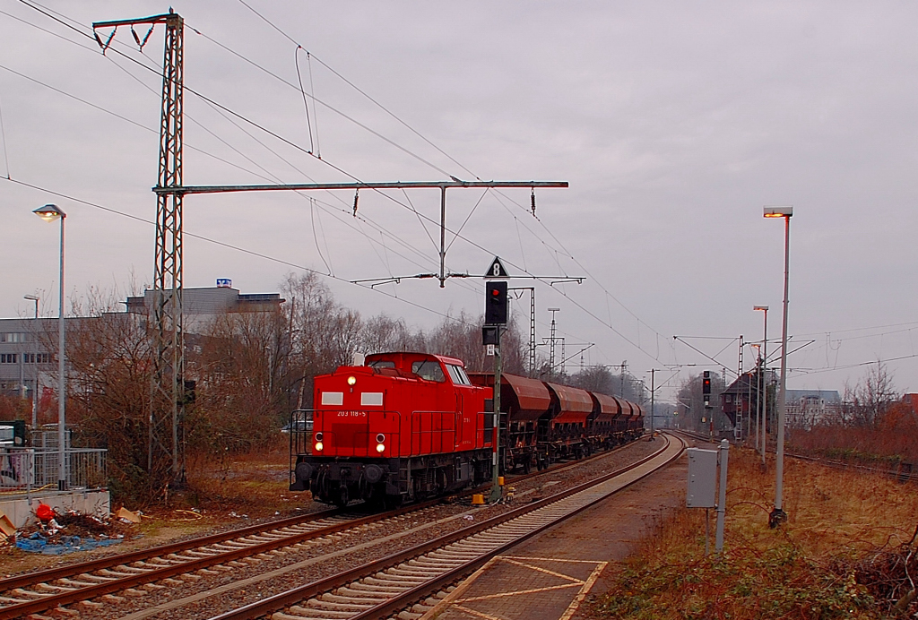 Lange angekündigt erreicht 203 118-5 mit einem Schotterzug den Bahnhof Rheydt. Zwei andere Fotografen hatten das Feld schon gestrichen. Ich hatte das Glück des geduldigen;-). Donnerstag 10.2.2011 Andreas Strobel