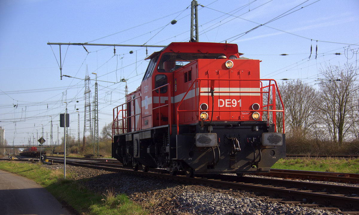 DE91 von Rheincargo rangiert im Güterbahnhof von Nievenheim.