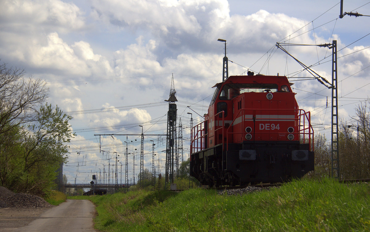 DE94 von Rheincargo steht abgestellt im Güterbahnhof von Nievenheim.