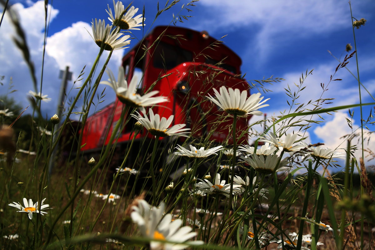 Wechselhaft hat der Juni bei uns in der Weststeiermark begonnen. Am Samstag dem 4.06 war der Wetteronkel den Arbeitern auf der Stainzer Lokalbahn aber gut gesinnt . Am Programm standen das reinigen der Spurrinnen an allen Bahnübergängen sowie das versetzten 2er Verkehrszeichen. Ganz nebenbei hab ich mich mal zwischen die Margeriten verlaufen ,....