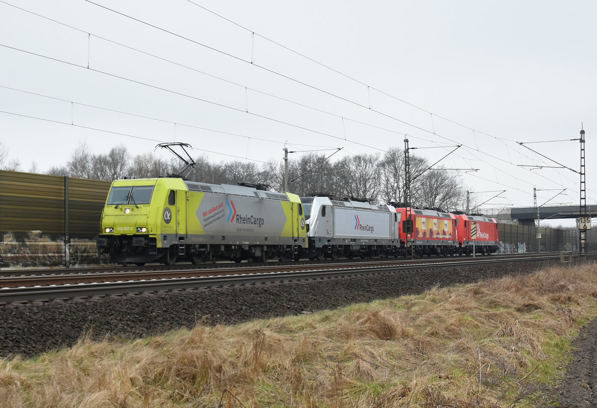 Als Lokzug (Basel Bad Bf - Karlsruhe Rbf) fuhr die ATLU/RHC 119 004-9 (185 623-6) am 22.12.2016 bei Hügelheim, nur wenige Kilometer nach dem Startbahnhof, gen Freiburg (Breisgau). Tobias Schmidt