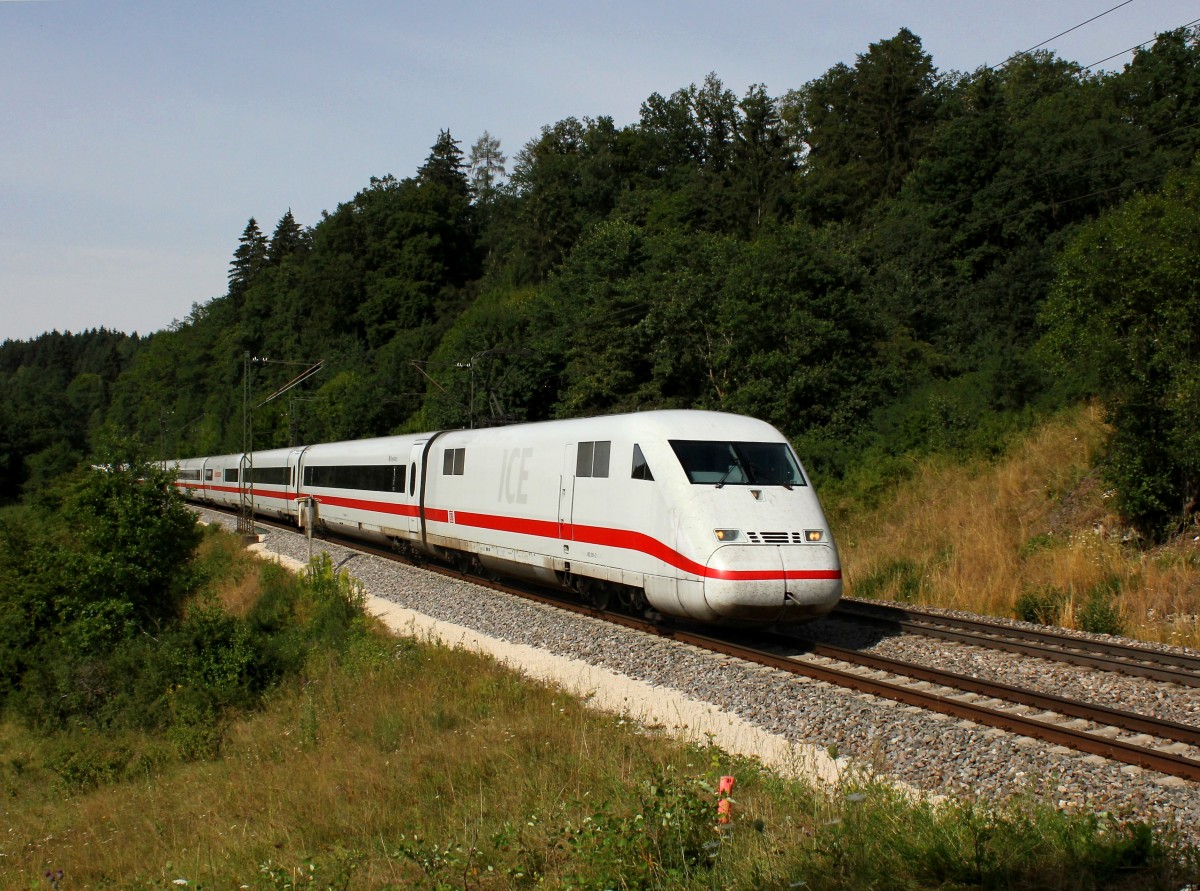 Hochwasserumleiter auf der KBS 310: 402/808 019-4 (Hagen) und 402/808 033-5 (Ulm) als ICE 848/858 auf dem Weg von Berlin nach Düsseldorf und Köln. Fotografiert am 25.08.2013 in Magdeburg Diesdorf. Christian Geschonneck
