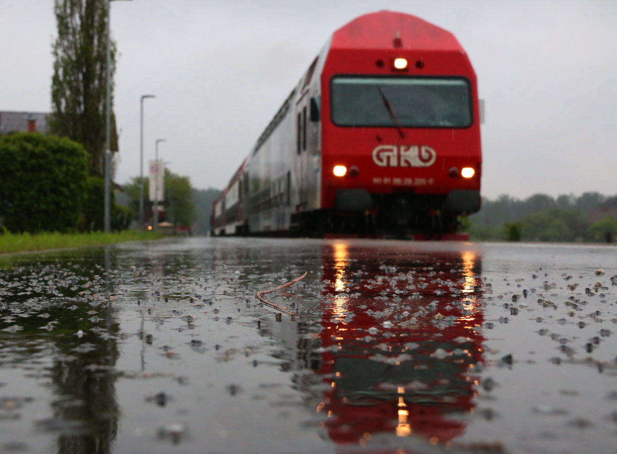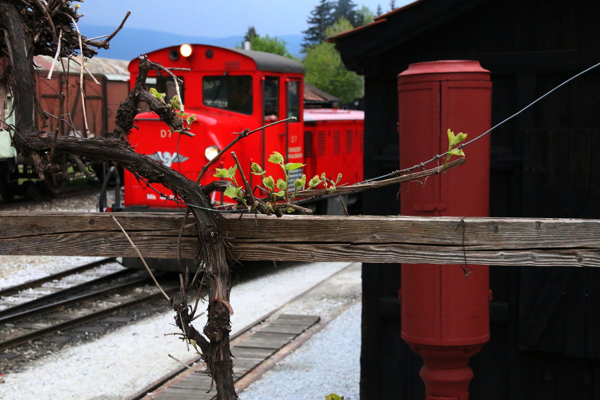 Bei diesem Anblick möchte man fast nicht glauben, dass es nur zwei Tage zuvor ca. 20 cm geschneit hatte. Im Hintergrund zu sehen ist X552 023-4. Aufgenommen am 29.4.2016 in Berg im Drautal.