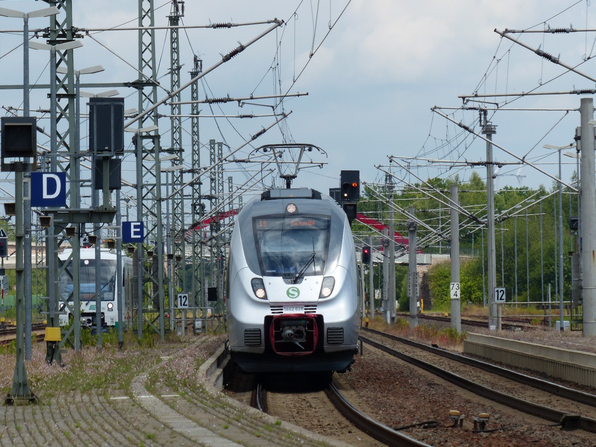 1442 602 fährt am 15.03.2014 mit der S5 nach Leipzig/Halle Flughafen durch die Ortslage von Gößnitz und wird gleich selbigen Bahnhof erreichen. Matthias Hartmann