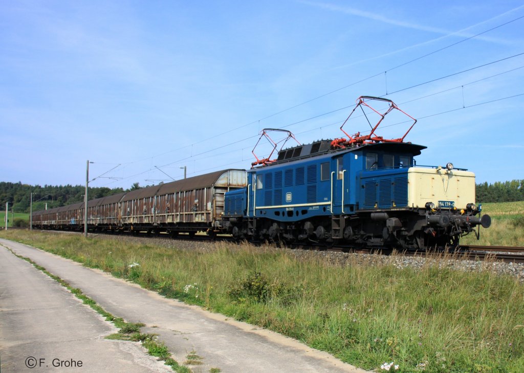 BEM E94 192 mit Henkelzug als DGS 75715 Langenfeld - Wassertrüdingen, KBS 920 Würzburg - Treuchtlingen, fotografiert bei Burgbernheim am 26.08.11 Frank Grohe