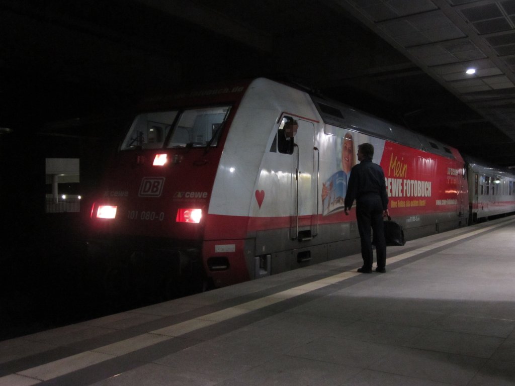 101 037-0 "Eisenbahner mit Herz gesucht" mit dem IC 1993 von Berlin Südkreuz nach München Hbf in Berlin Südkreuz. Vorne am Zug befand sich eine 120er. 28.03.2014 Stephan Kemnitz