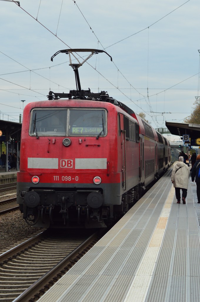 Ein RE7 Zug nach Krefeld Hbf fährt hier gerade in Solingen Hbf ein, viele Reisende sind froh das nach einigen noch Streik bedingten Ausfällen mal wieder ein Zug kommt, auch wenn er 15 Min. Verspätung aufweisst.....Sonntag 9.11.2014 Andreas Strobel