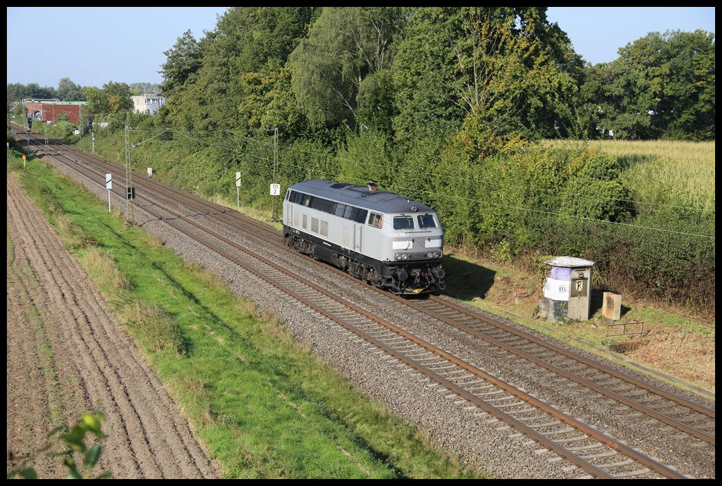 Die schwere Lokomotive war hier am 14.8.2024 im Schrott Pendel Einsatz zwischen Hafen Osnabrück und Stahlwerk Georgsmarienhütte unterwegs. Hier hat der Zug gerade den Bahnhof Hasbergen um 14.39 Uhr in Richtung Osnabrück verlassen. Gerd Hahn