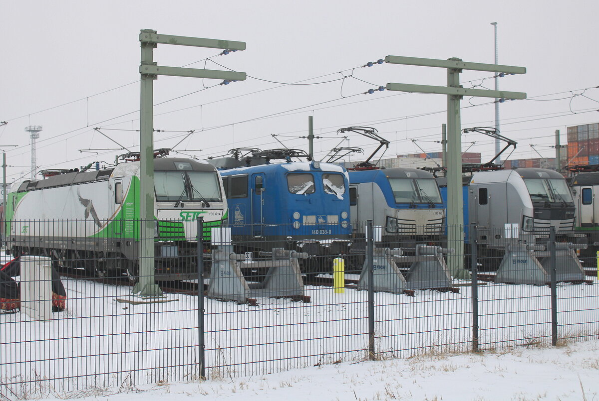 EGP 139 285-1 + 140 656-0 am 17.02.2026 in der in der HPA Lokservicestelle im Bahnhofsteil Hamburg Alte Süderelbe. Durch den Zaun fotografiert. Frank Thomas