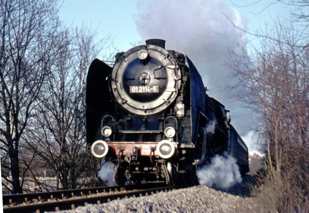 1973 kurz vor Senftenberg, legt sich die 01 2204 mächtig in´s Zeug. Auffällig, sie hat noch die großen "Wagner-Windleitbleche"