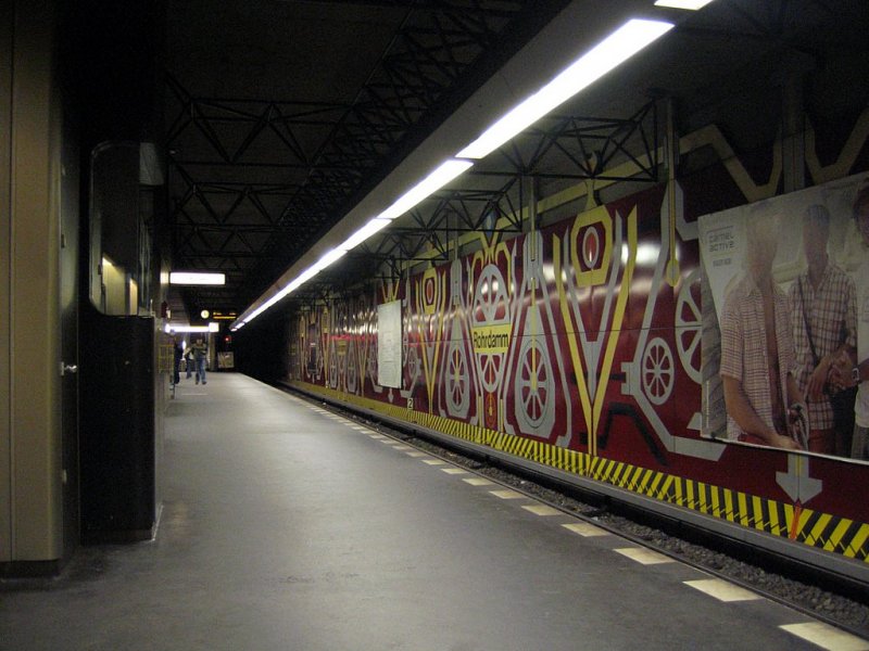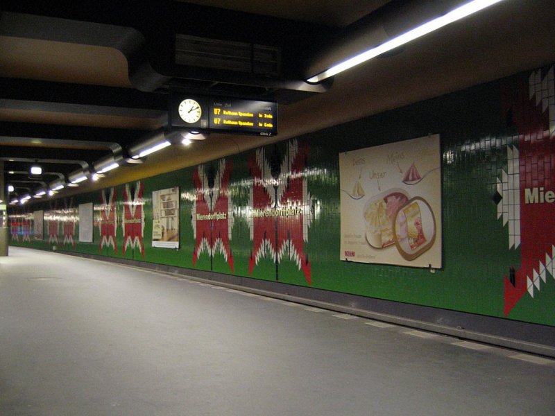 U-Bahnhof Mierendorffplatz: Von Rümmler gestalteter 1980 eröffneter Bahnhof, der nach Aussage des Architekten eine formale Entwicklung aus dem Anfangsbuchstaben M aus farbiger Industriekeramik.Leider ist auch dieser Bahnhof im typischen 80er Jahre dunkel gehalten, sodass die Bilder ziemlich lichtarm sind. C-R