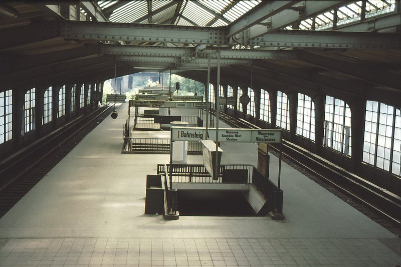 Der verlassene Ringbahnsteig im Bahnhof Westkreuz während des 2.Reichsbahnerstreiks 1980.(Archiv P.Walter)