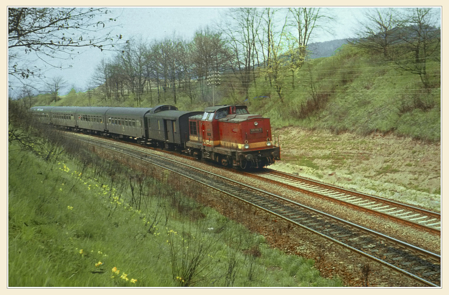 Personenzug von Saalfeld auf der Rampe nach Unterwellenborn etwa 1980