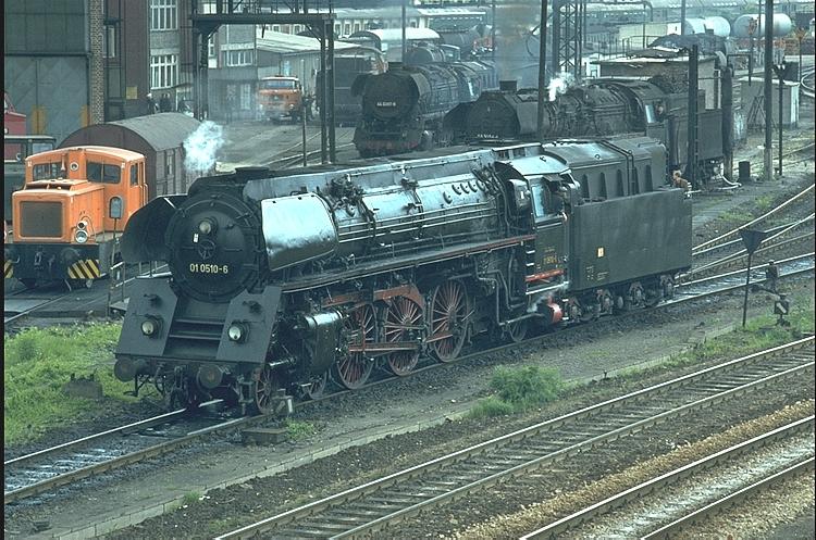 Deutsche Reichsbahn 1981,Blick (in die Vergangenheit)von der bekannten Strassenbrücke auf das BW Saalfeld.01 0510-6 beim rangieren.(Archiv P.Walter) Peter Walter