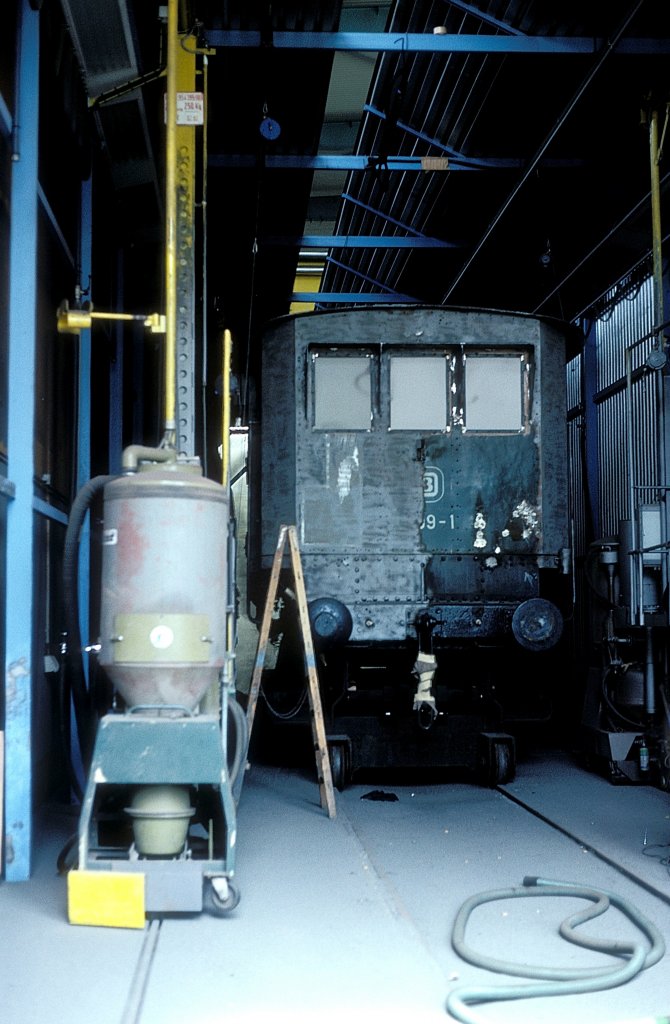 191 011 (Bayerische E 91.0) ausgemustert und als Trafo für das Prüffeld eingesetzt * Quelle: selbst fotografiert 1983 AW Frankfurt, Archiv-Nr. 23/19; vom Originaldia abgescannt. Benedikt Dohmen